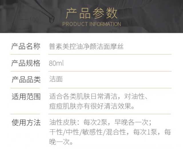 妆 - 普素美控油净颜洁面摩丝 氨基酸洁面
